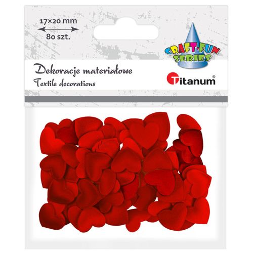 Materiałowe serca 20x17mm czerwone 80szt. TITWAL FABRIC, 17X20M LOVELY HEART 80PC/BAG WITH HEADER CARD, KOLOR CZERWONY
