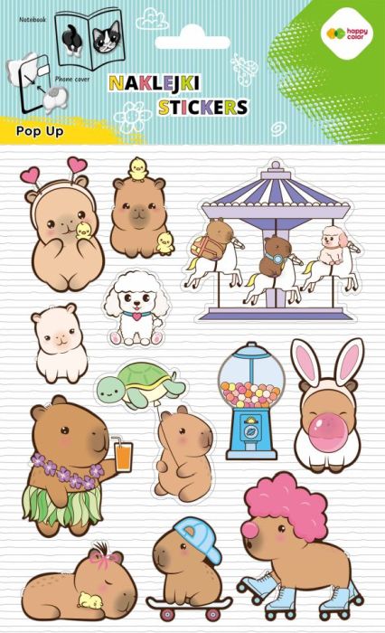 Naklejki 3D POP UP, Kapibara Kapi Fun, 146X240 mm, Happy Color | DOSTĘPNE NA POCZĄTKU LISTOPADA [opakowanie=5szt] |
