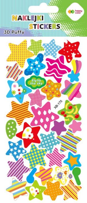 Naklejki 3D PUFFY-Colorful Stars, 9.5 cm x 22 cm, Happy Color [opakowanie=5szt] |
