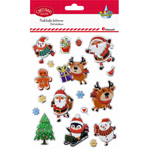Naklejki wypukłe Mikołaje, bałwanki, Ciastek, pingwiny, choinka 17szt. |