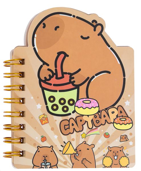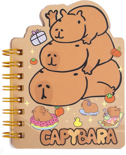 NOTES A5 NA SPIRAL - KAPIBARA [opakowanie=3szt]Uroczy notes w formacie A5 (14.8 x 21cm), wyposażony w wygodną spiralę, która ułatwia przewracanie stron. Zawiera 50 kartek w szerokie linie o gramaturze 80 gram.
