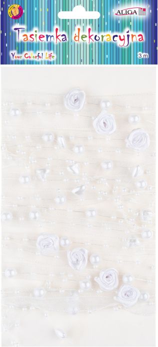 Tasiemka dekoracyjna WSP-3636 w kolorze perłowym, dł. 3m |