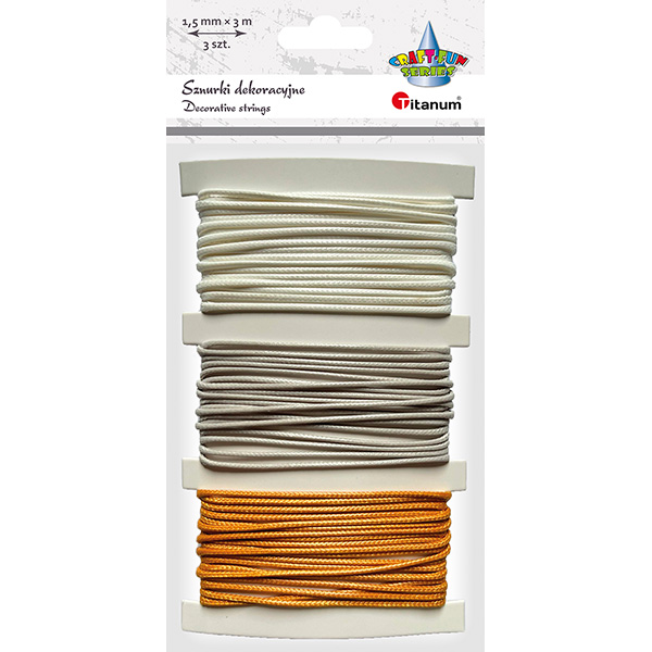 Sznurki poliestrowe 1, 5mmx3m biały, srebrny, złoty 3szt. |