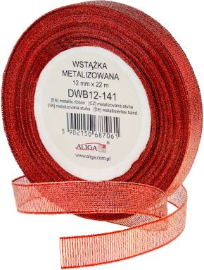 Wstążka metalizowana DWB12-141 czerwona, rozm. 12mm/22., 1op.=4rol. |