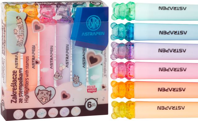 Zakreślacze ze stempelkami ASTRAPEN ANIMALS CHOCO - 6 kolorów |