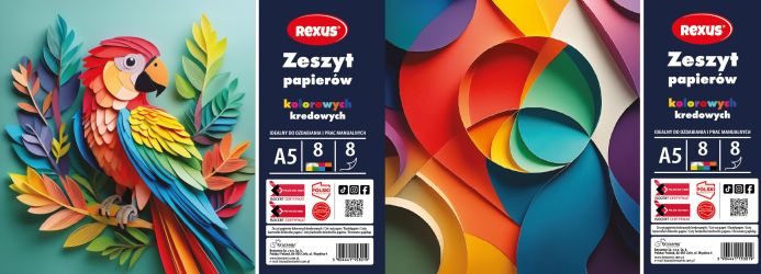 ZESZYT PAPIERÓW KOLOROWYCH KREDOWANYCH A4/8k. / REXUS TROPICOOL [opakowanie=10szt]