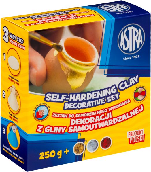 Glina biała samoutwardzalna ASTRA z farbami: 250 g + 3 kol × 20 ml + pędzelek [opakowanie=4szt] |