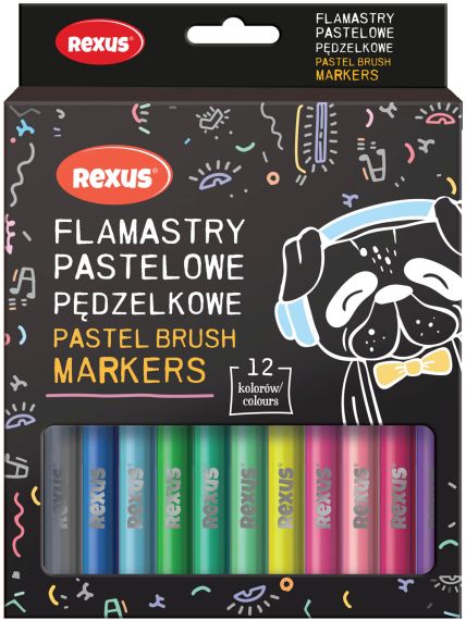 FLAMASTRY PASTELOWE PĘDZELKOWE 12kol. / REXUS TEENS |