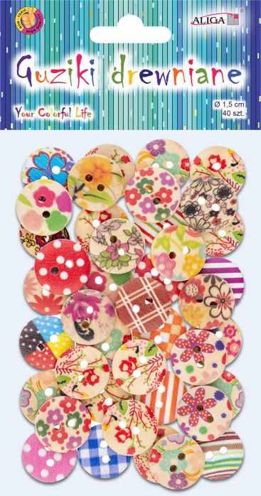Guziki drewniane GUZ-5685 wielokolorowe, rozm. 1, 5cm, op. 40szt. |