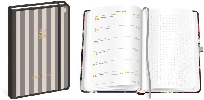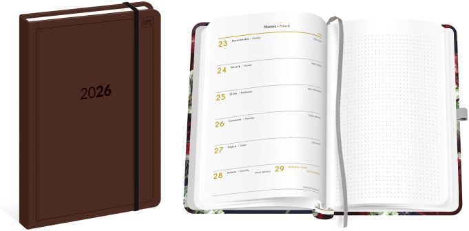 Kalendarz książkowy B6 192 Mat+UV Flowers 2026 Format B6. Liczba stron: 192. Zaokrąglone rogi. Matowa okładka z efektownymi, błyszczącymi detalami. W środku kolorowa wyklejka. Twarda oprawa skutecznie chroni zawartość przed zniszczeniem. Elastyczna gumka chroni luźne notatki przed wypadnięciem. Kalendarium... |