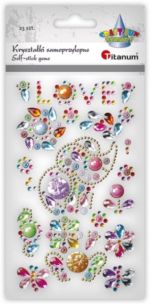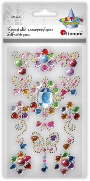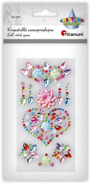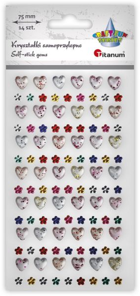 Kryształki samoprzylepne na pasku 75mm mix serca 90x100mm przezroczyste z brokatem, kwiaty O6mm mix kolorów 14szt. TITWLK26 |
