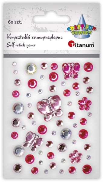 Kryształki samoprzylepne mix tonacja różowa motyle 21x18/15x14mm, okrągłe O10/8/6/4mm 60szt. TITWLK26 |