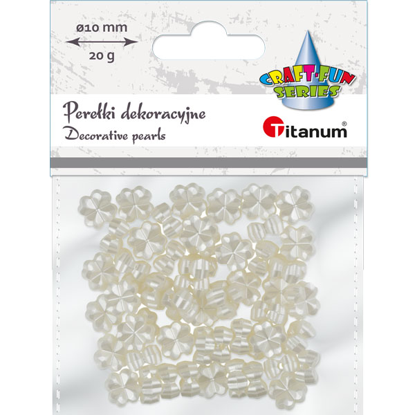 Koraliki perełki plastikowe czterolistna koniczyna O10mm dziurka O1mm białe 20g |