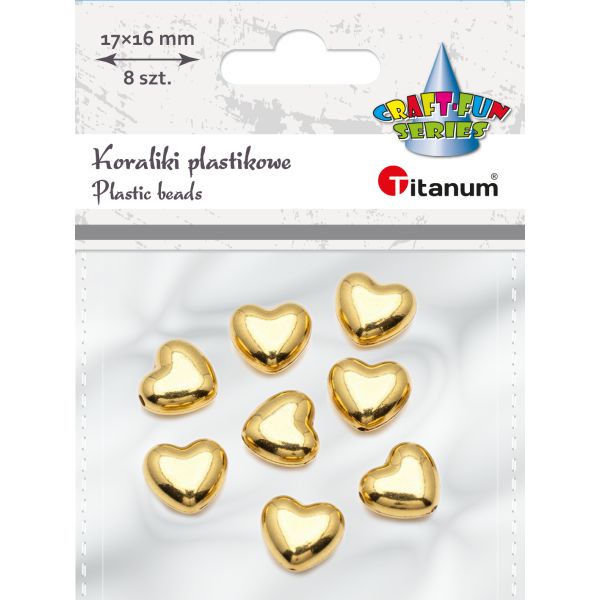 Koraliki plastikowe lustrzane serca wypukłe 17x16mm dziurka O2mm złote 8szt. |