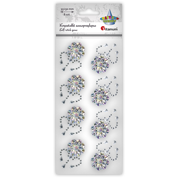 Kryształki samoprzylepne kwiaty 35x50mm srebrne 8szt. |