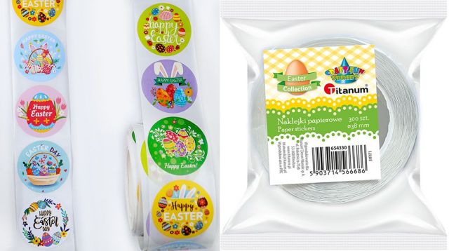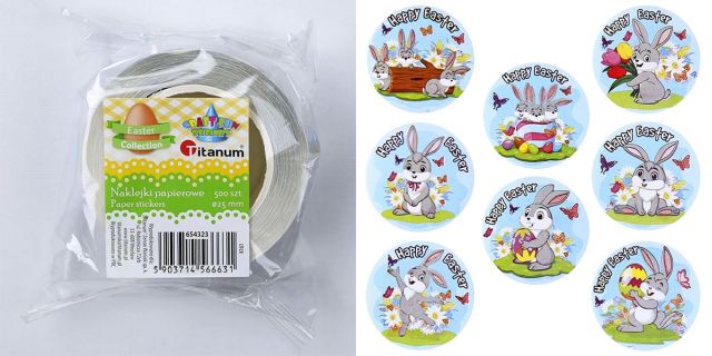 Naklejki papierowe na taśmie 8 wzorów Wielkanoc O25mm 500szt. TITWLK26 |
