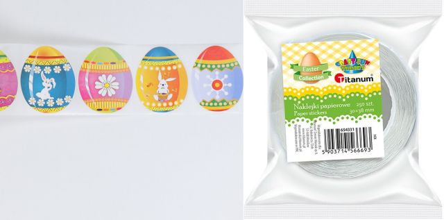 Naklejki papierowe na taśmie 8 wzorów Wielkanoc pisanki 30x38mm 250szt. TITWLK26 |
